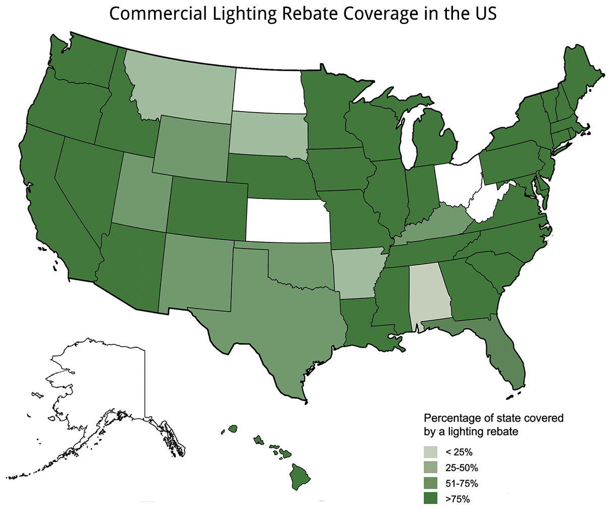 Currently, 77% of the US has an active commercial lighting rebate program, just shy of the record high of 79% we saw in 2017. 22% of that area has a bonus program available at this moment. That's the highest we've seen since we started tracking commercial lighting rebates 14 years ago.